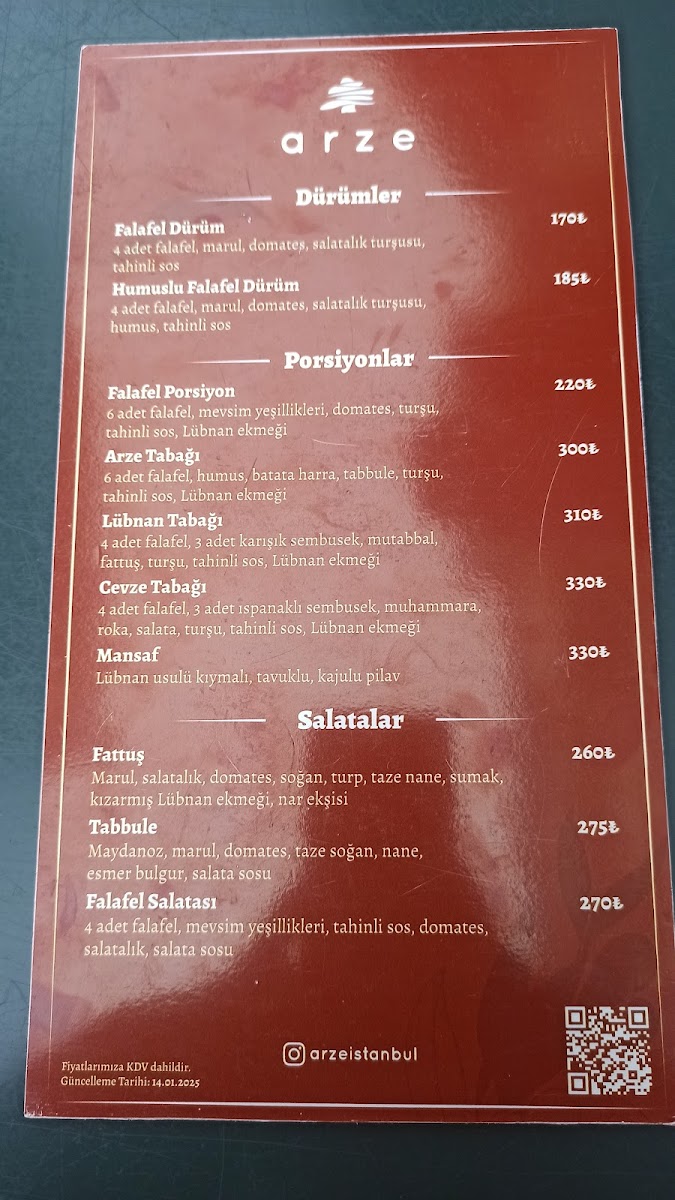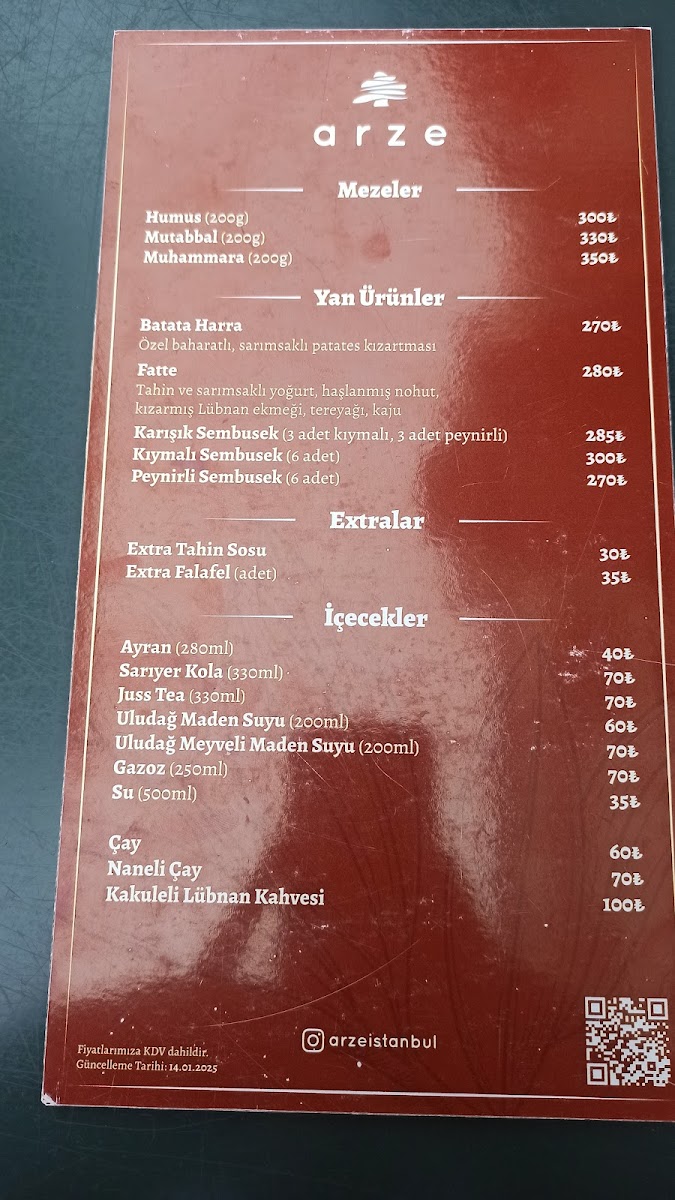 Introducing the menu at arze - Uncular Cd. 32A, a cozy Lebanese restaurant nestled in the charming Üsküdar district of Istanbul. This family-owned gem is renowned for its authentic flavors and hospitable atmosphere, making it an ideal spot for a quick yet satisfying meal.